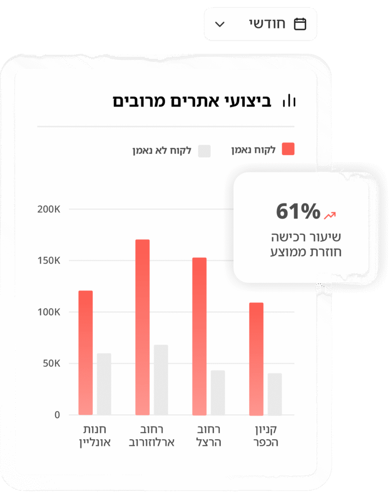 אנו בונים לכל לקוח סביבת DATA ייעודי משלו ודשבורד המציג את הנתונים של הלקוחות, המכירות, ניתוח הקמפיינים וקהלי סגמנטים בזמן אמת.
